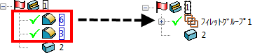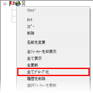 - ツリーの個別フィーチャーを選択し、ソリッド ツリーメニューから、全てグループ化 を選択する場合