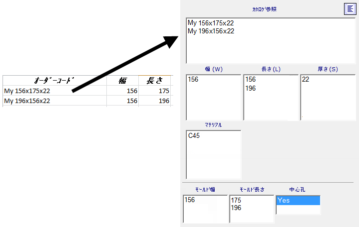 - [寸法]ワークシートでパラメーターの短い名およびオーダー コードが含まれているセルは、既定では保護されています。[Excel でオーダーコードを編集]を選択すると、これらのセルを編集できるようになります。