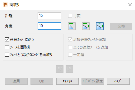 面取りを作成 - 角度と距離