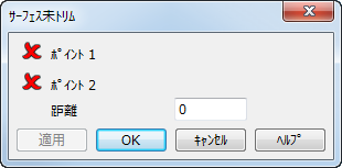 - [サーフェス]タブ > [製造]パネル > [加工] > [未トリム]をクリックすると、[サーフェス未トリム]ダイアログが表示されます。