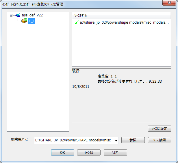 インポートしたコンポーネント定義のソース モデルを変更するには、このダイアログ ボックスを使用します。