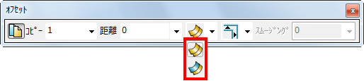 他のオブジェクトをオフセットする際に不連続性を処理する方法を指定するには、オフセット ツールバーから次のオプションのいずれかを選択します。