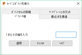 [ポイントからの距離]: 現在選択しているポイントから、指定の距離でカーブ上のポイントを入力します。ポイントが未選択の場合は、ポイント 1 が使用されます。