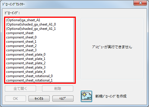 コンポーネントドローイングのテンプレートでパラメーターを指定して、GA シートのマテリアルの詳細に含めるデータの列を定義することができます。