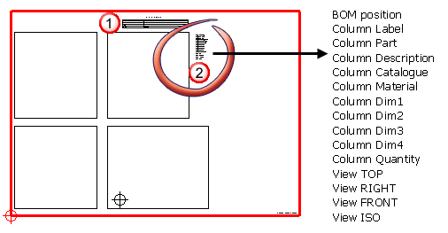 テキスト BOM position がリストに存在しない場合、パラメーター表は上に示すように配置されます。表の最大高さを指定するには、テキスト アイテムの終点で End と入力します。