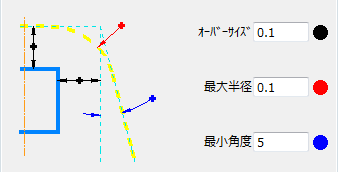 視覚補助として、コンタクトプロファイルが破線で表示されます。これにより、ウィザードの値から作成されるコンタクトプロファイルを事前に確認することができます。