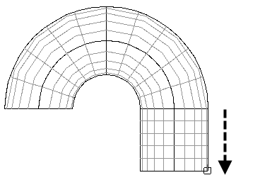 次の図では、サーフェスは曲率沿いに拡張されています。