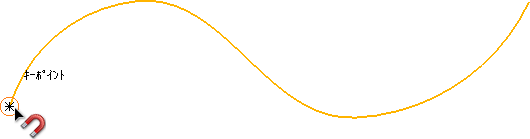 カーソルアイコンがマグネットの形に変わり、トリムされる終点、または、エッジに丸印が表示されます。