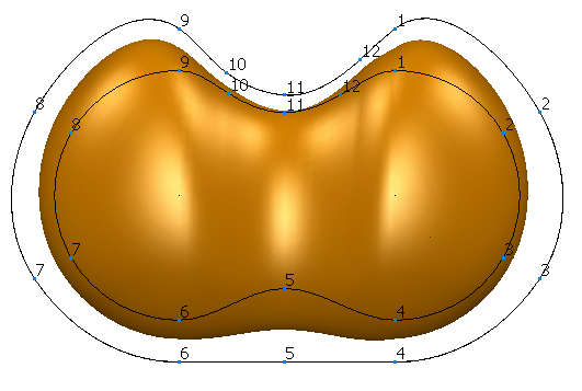 適切な参照軸を定義します。この例では、サーフェスは垂直軸を使用したモーフィングに失敗します。それは、参照軸に垂直な平面を定義する際に、モーフィングされるサーフェス上のいくつかのポイントで参照カーブを 3 回以上通過しているためです。