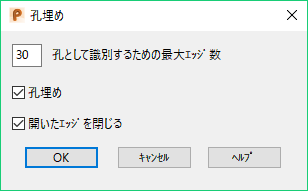 [孔埋め]ダイアログ ボックスを使用して、モデル内のギャップによる孔を埋めるためのオプションを設定します。