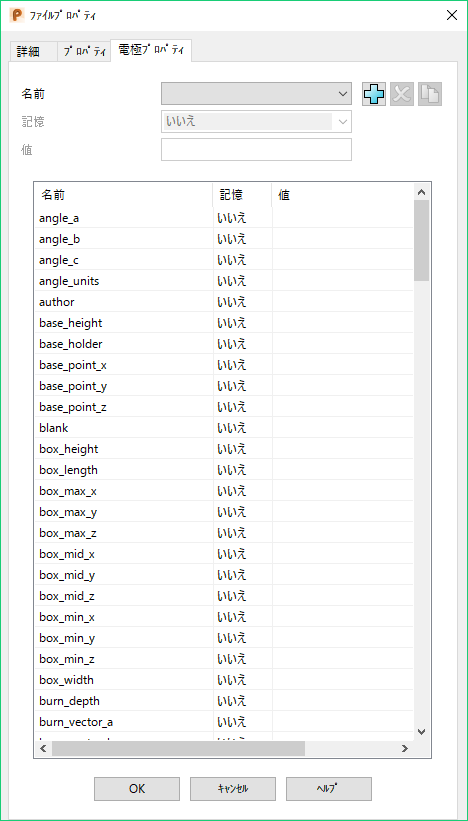 [記憶]: ドロップダウン リストから[はい]または[いいえ]を選択します。[はい]を選択すると、そのプロパティの値が自動的に[追加の電極詳細]ダイアログに入力されます。