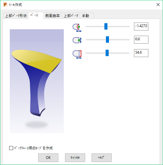 ベース タブを使用して、ヒールのベースに関連付けられたパラメーターを指定します(図の黄色の部分)。