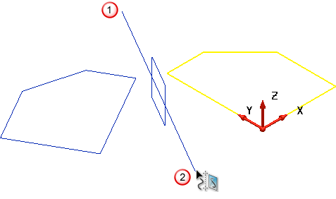 次の方法で、2 つのポイントを入力してオブジェクトをミラーし、ミラー平面を定義します。