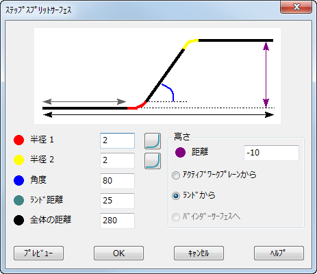 OK - ステップスプリットサーフェスを作成して、別のダイアログを表示します。