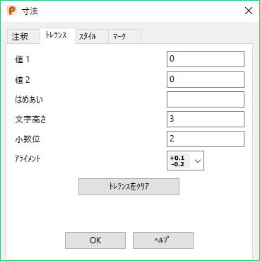 このタブを使用して、寸法のトレランスを編集します。