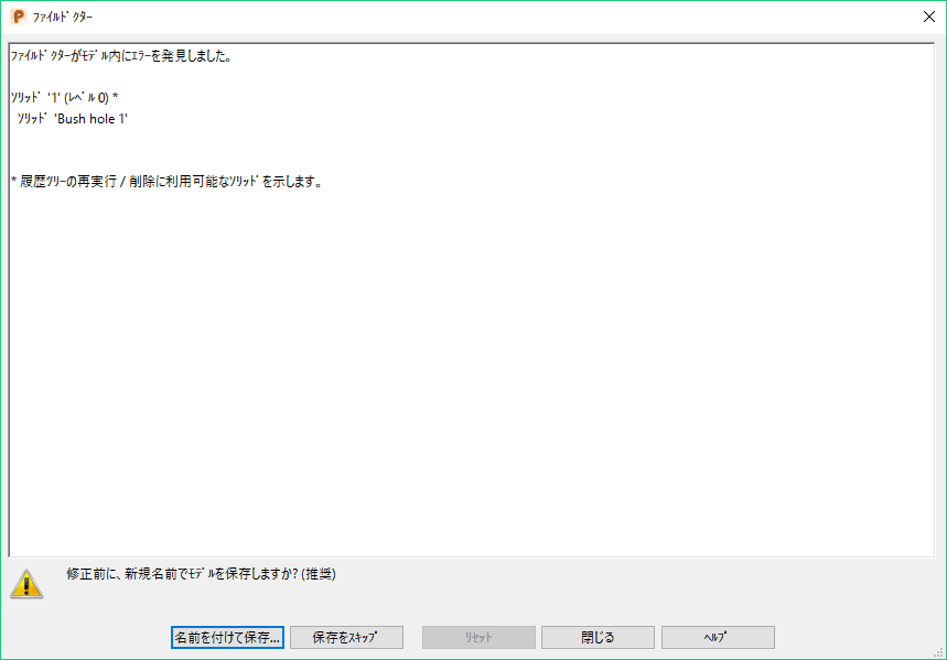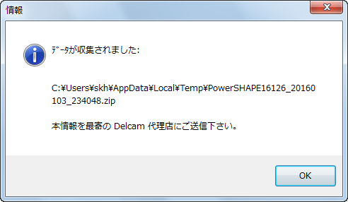 データベースエラーが検出される場合、ダイアログで、解析のためにモデルとマクロを送信するようにリクエストされます。