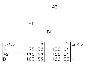 表には、バルーンのポインターの座標が表示されています。