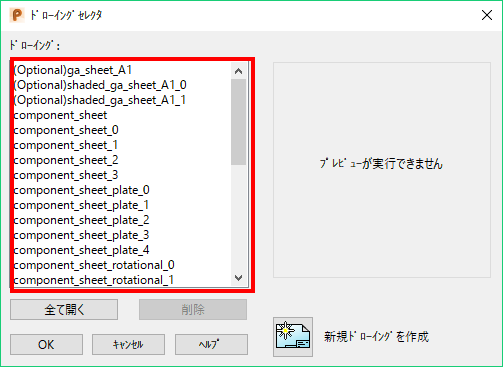 がある場合、コンポーネントドローイング ダイアログの GA シートを作成、または、半透明 GA シートを作成 を選択すると適切なドローイングが作成されます。