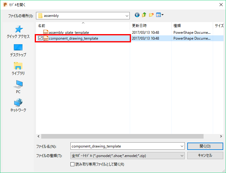 次の方法で、コンポーネントドローイングのテンプレートを 共有データベース(shareddb) に追加することができます。
