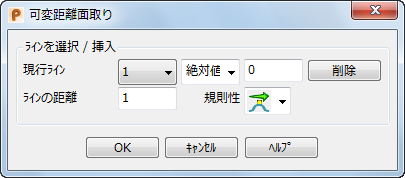 規則性 オプションは、距離の方法を組合せて使用するため、9 通りのオプションを定義できます。最初の用語は、ライン内に進入した際の距離の変化方法について、次の用語は、ラインから出た際の距離の変化方法について示します。
