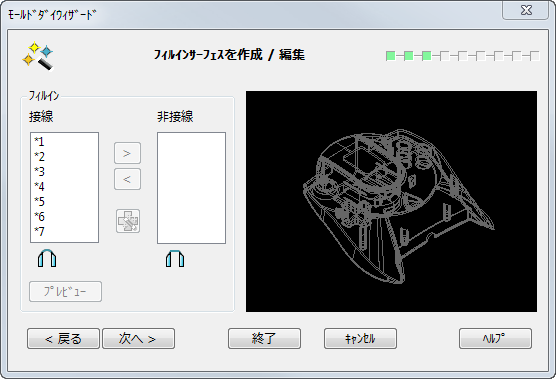 終了 - この時点でこのオプションを選択すると、現段階までの変更を保持したまま モールドダイウィザード を終了します。