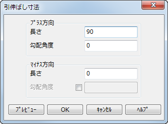 複数のワイヤーフレーム、または、テキストオブジェクトを選択した場合、押出し寸法 ダイアログが表示されます。 ダイアログを使用して、引伸ばしサーフェスの寸法を設定します。