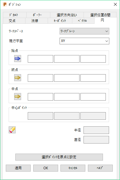 [適用]: ポジションを入力します。現行操作で複数のポイントが許可される場合は、ダイアログは閉じずに、さらにポイントを入力できる状態となります。そうでない場合は、ダイアログが閉じます。