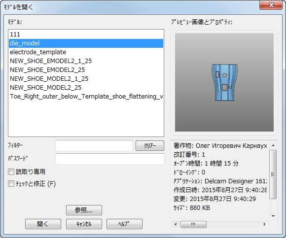 2. データベースに保存されているモデルを開くには、[モデルを開く]ダイアログ ボックスを使用します。