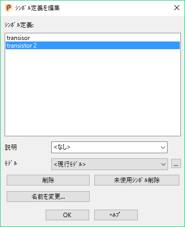 シンボル定義の名前は編集可能です。また、選択したモデルで使用されていないシンボル定義は削除することができます。