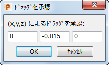 ドラッグ移動を確認するダイアログが表示されます。 同時にオブジェクトの移動距離が座標で表示されます。