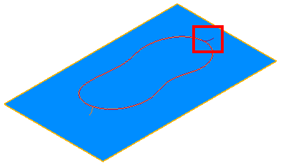 - [現行円弧]: 可変フィレットを作成するカーブをクリックします。次図のように、カーブ上に小さな円弧が表示されます。円弧に番号が追加され、該当の番号が 現行円弧 ドロップダウンリストに表示されます。