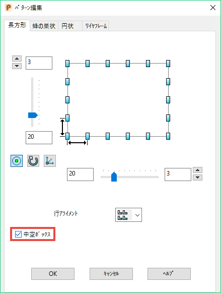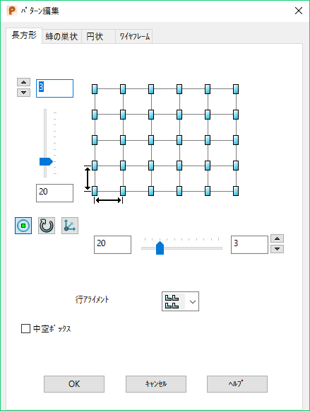 行数 - パターン内の行数を入力、または、矢印ボタンを使用して値を増減します。