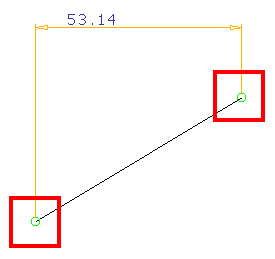 次図の斜線の寸法では、ラインの端点にリンク(従属性)が示されています。