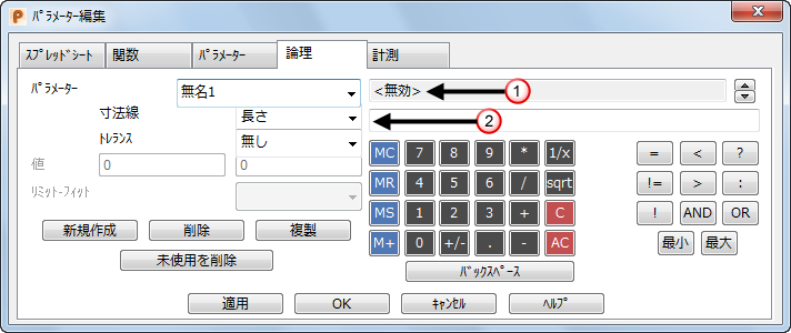 - [ホーム]タブ > [ユーティリティ]パネル > [パラメータ]を選択します。[パラメータ編集]ダイアログが表示されます。