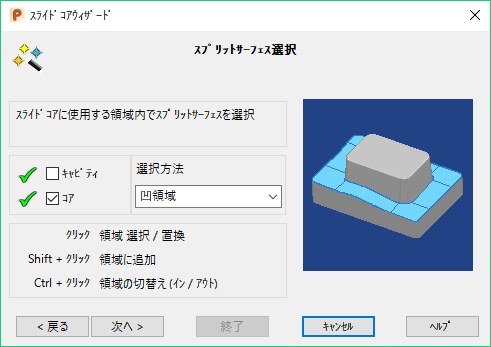 - [次へ]をクリックすると、[アンダーカット領域選択]ページに進みます。