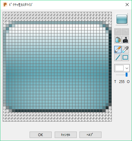 選択されたボタンは、修正用に各ピクセルごとのグリッドにビットマップとして表示されます。