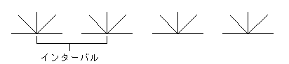 指定間隔で配置 - ラインパターンの指定 間隔 で、シンボルを配置します。