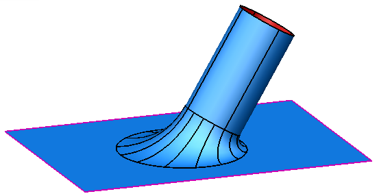 ブレンドサーフェスは、1 つのサーフェスからサーフェスのグループ上に滑らかな接続面を作成します。その面は第 1 のサーフェスから接線性を保って離れ、サーフェス間の滑らかな接続を確保するようにサーフェスのグループに接続します。