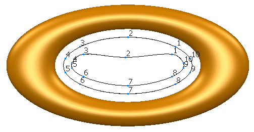 注: 参照カーブの中心に近い内側にポイントがある場合、参照カーブ上の最も近いポイントは参照カーブの上側または下側のいずれかにある可能性があるため、モーフィングされたサーフェス内にギャップが発生することがあります。