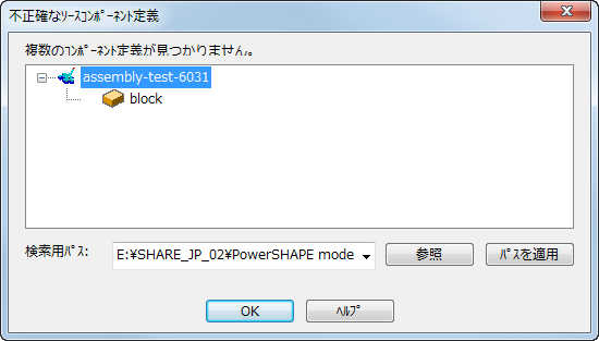 [パスを適用]: 指定したフォルダーがスキャンされます。必要なモデルまたはコンポーネント定義がこのフォルダーで見つかった場合は、ダイアログ ボックスのリストから除去されます。