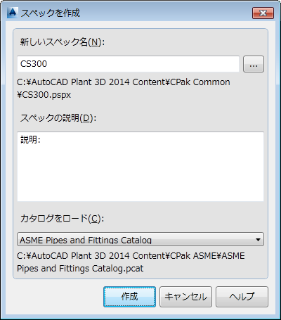 新しいスペックのファイル名を指定します。