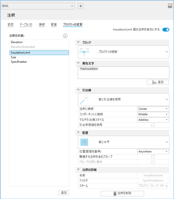 注: Elevation、ElevationExtended、および InsulationLimit の注釈のプロパティを置き換えることはできません。