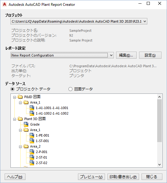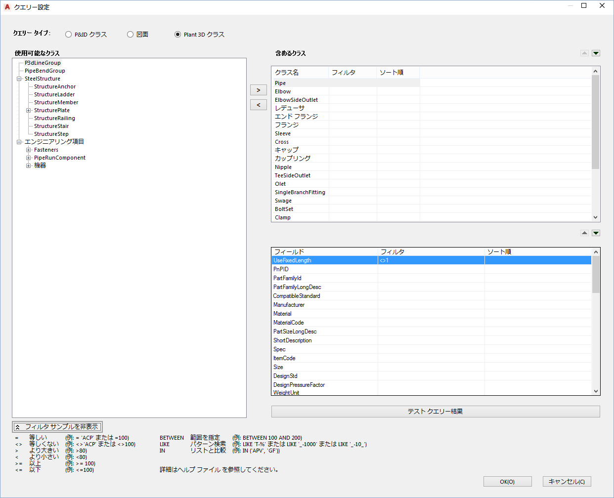 - [クエリー タイプ]で、[P&ID クラス]、[図面]、または[Plant 3D クラス]をクリックします。