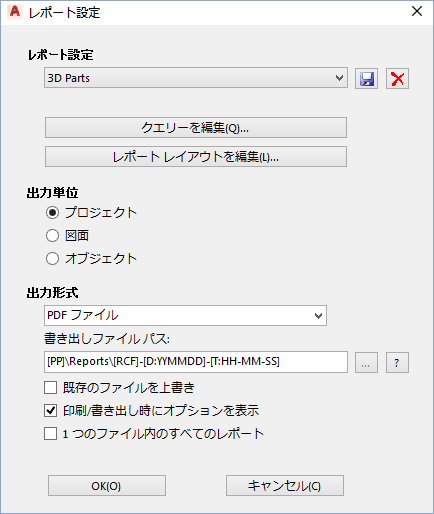 - [レポート設定]ダイアログ ボックスで、次の操作を行います。