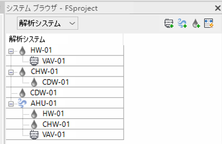 システム ブラウザに、解析システムとゾーン設備機器の階層が表示されます。