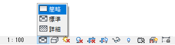 作図領域の下にあるビュー コントロール バーで、[詳細レベル]アイコンをクリックして、オプションを選択します。