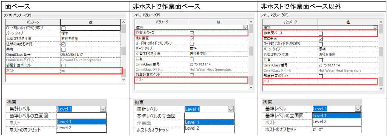 非ホスト要素は、作業面ベース、または非作業面ベースとして定義できます。