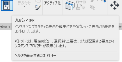 リボンのツールの上にカーソルを置いたままにすると、既定では Revit によってツールチップが表示されます。ツールチップは、ツールの簡単な説明を表示します。追加の情報がある場合は、カーソルをリボンのツールの上にもうしばらく置いたままにすると、その情報が表示されます。ツールチップが表示されているとき、[F1]を押して状況依存のヘルプを起動し、そのツールについての詳細を表示することができます。