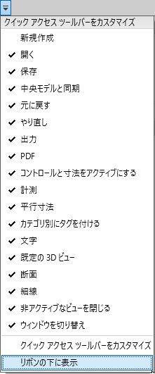 クイック アクセス ツールバーはリボンの上または下に表示することができます。設定を変更するには、クイック アクセス ツールバーで、[クイック アクセス ツールバーをカスタマイズ]ドロップダウン リスト