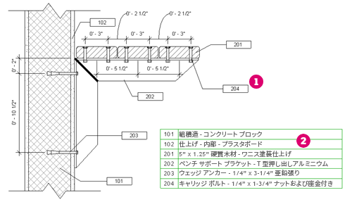 CAD が導入された後は、テキストの配置と編集が簡単になったため、キーノート作成の必要性が減りました。キーノートは、図面を読むときに混乱を招きかねないため、あまり使用されませんでした。文字注記を図面の要素の直下に配置することで、図面を読む際に凡例を見て値を探す必要がなくなったのです。しかし、BIM ワークフローとデータがすべての Revit ファミリの一部となった今、キーノートをもう一度見直してみてはいかがでしょうか。